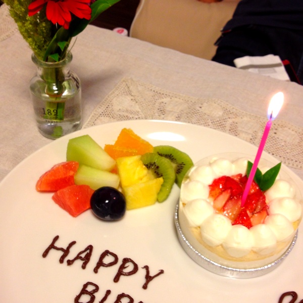 おもてなしディナー デザート編ミニケーキとフルーツのデザートプレートこれは盛り付けただけ 笑 お皿に文字書くの難しいぃー あまりの下手さに笑った Makimaki222 Snapdish スナップディッシュ Id 00hk9a