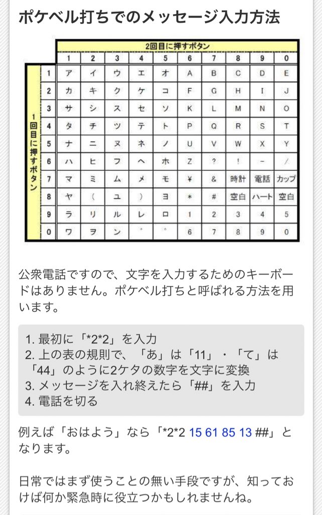 今さらながら ポケベル入力 2タッチ入力 をおさらいする 車中泊徒然草