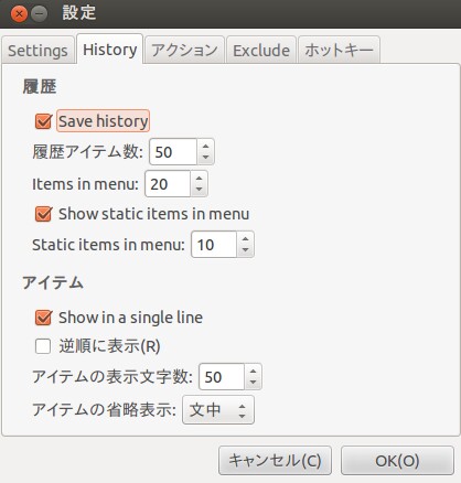 Ubuntu Clipit その4 Historyの設定 Kledgeb
