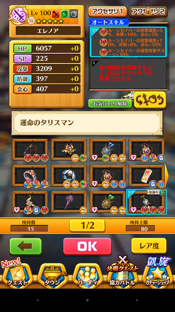 白猫についてです エレノアにアクセ 運命のタリスマン を装備させた Yahoo 知恵袋