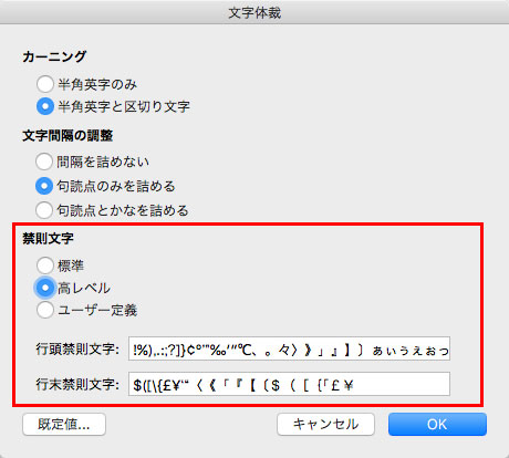 Word 2016 For Mac 禁則処理の設定を行うには