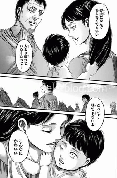 イェーガー家の愛息子 Twitter वर リンホラの 14文字の伝言 を思い出す48話 生まれてきてくれてありがとう しかも カルラのシーンで暁の鎮魂歌が流れたのが弔いの意味も兼ねていて余計泣けた にしてもカルラママ エレンそっくりで美人親子すぎる