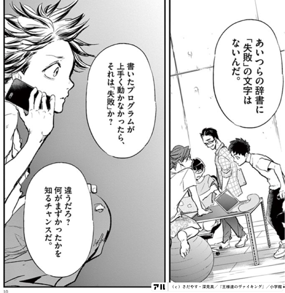 あいつらの辞書に 失敗 の文字はないんだ 書いたプログラムが上手く動かなかったから それは 失敗 か 違うだろ 何がまずかったかを知るチャンスだ 王様達のヴァイキング アル