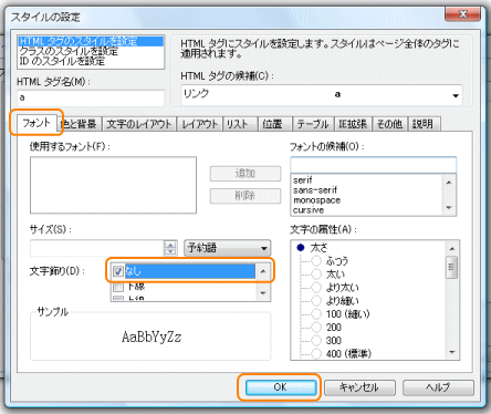 hpビルダー 下線 飾り文字 消せない