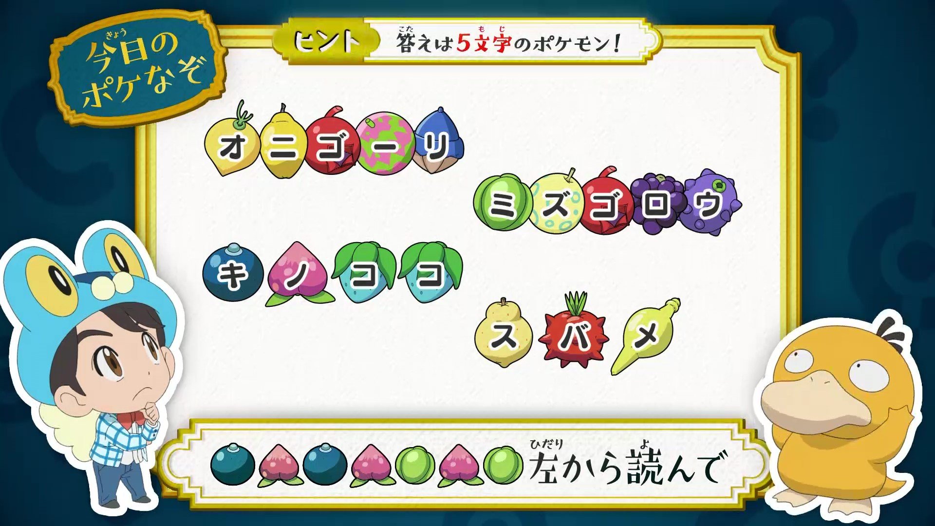 アニメ ポケットモンスター 公式 On Twitter 今日の ポケなぞ なぞとき東大生 松丸亮吾 さんが考案した アニポケなぞときを出題 問題の指示に従って 導かれるポケモンは何でしょう ヒントは 同じきのみには同じ文字が入ります そして発想を転換させ