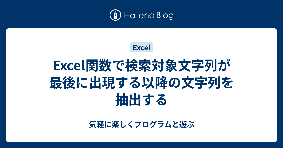 Excel関数で検索対象文字列が最後に出現する以降の文字列を抽出する 気軽に楽しくプログラムと遊ぶ