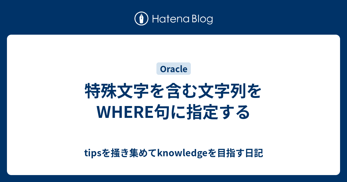 特殊文字を含む文字列をwhere句に指定する Tipsを掻き集めてknowledgeを目指す日記