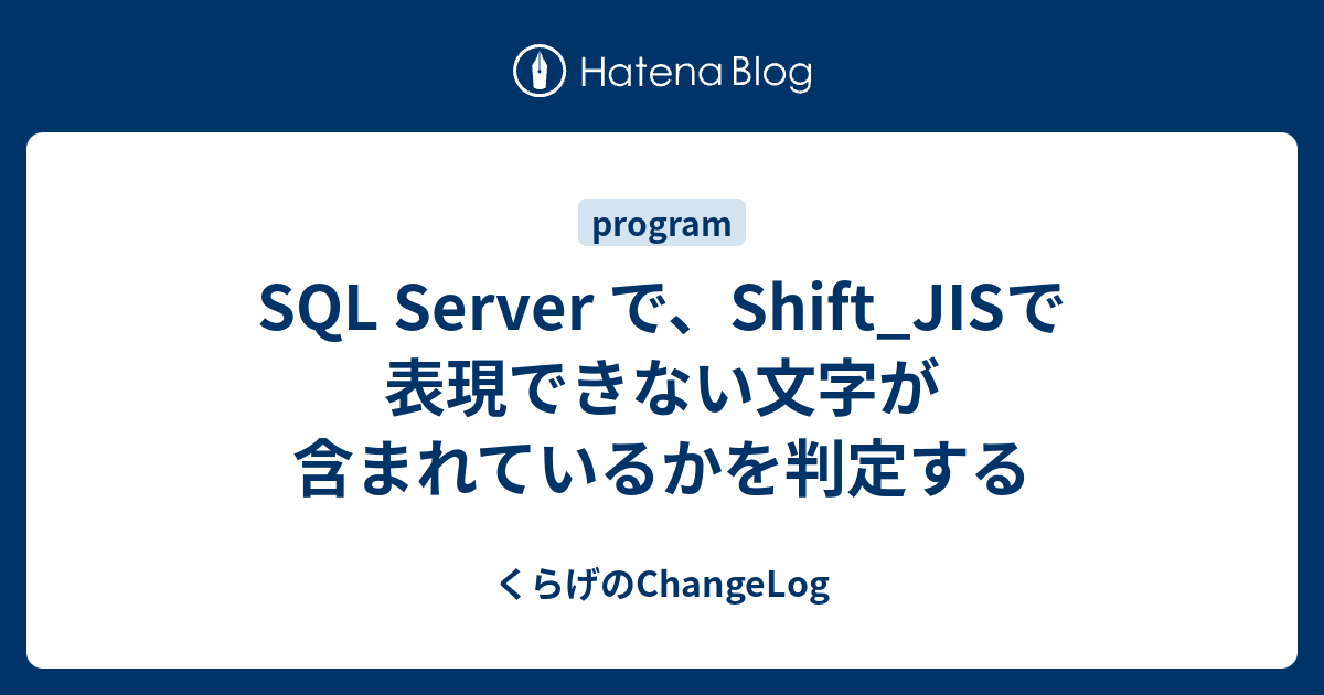 Sql Server で Shift Jisで表現できない文字が含まれているかを判定する くらげのchangelog